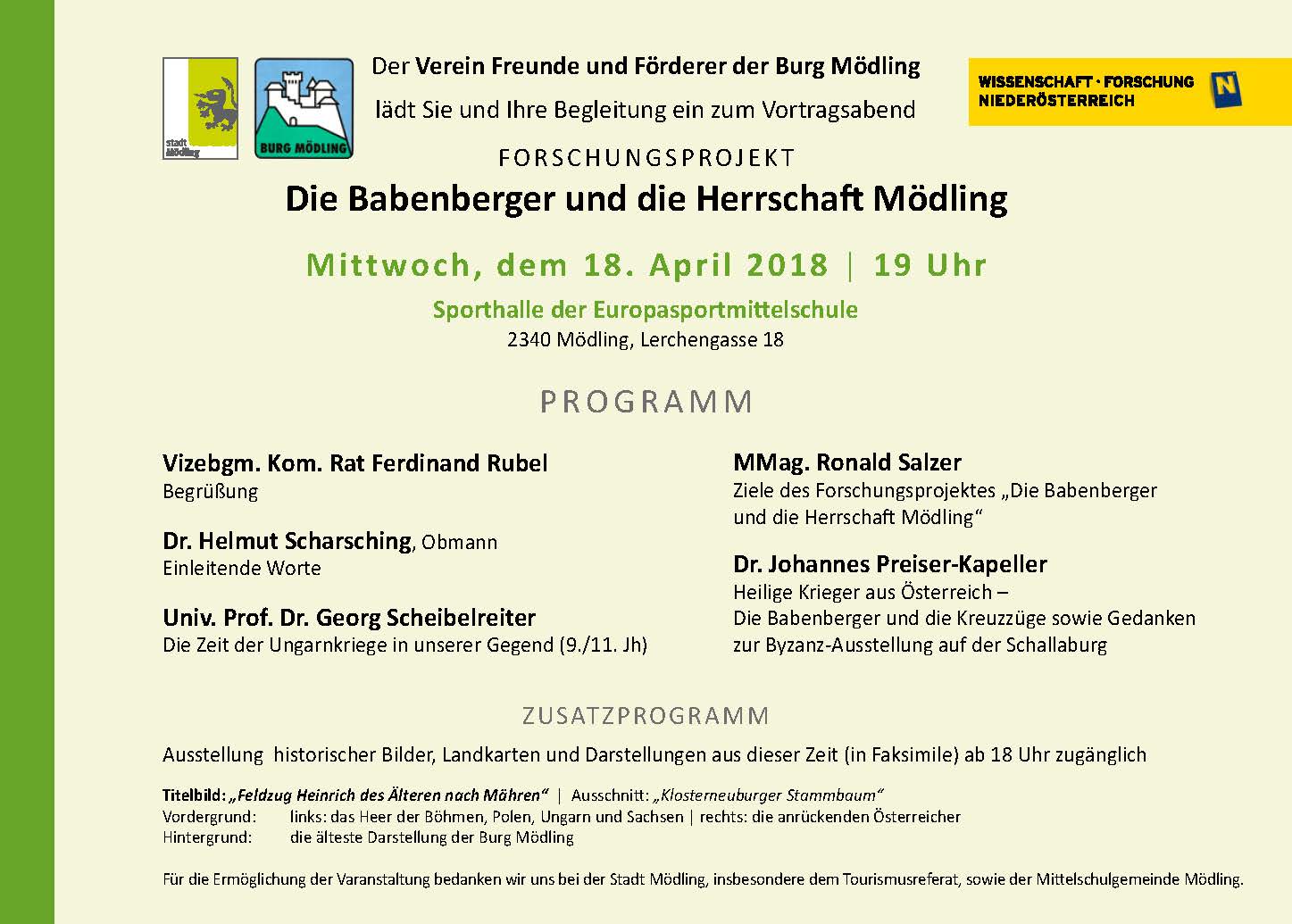 Für die Ermöglichung der Veranstaltung bedanken wir uns bei der Stadt Mödling, insbesondere dem Tourismusreferat, sowie der Mittelschulgemeinde Mödling.