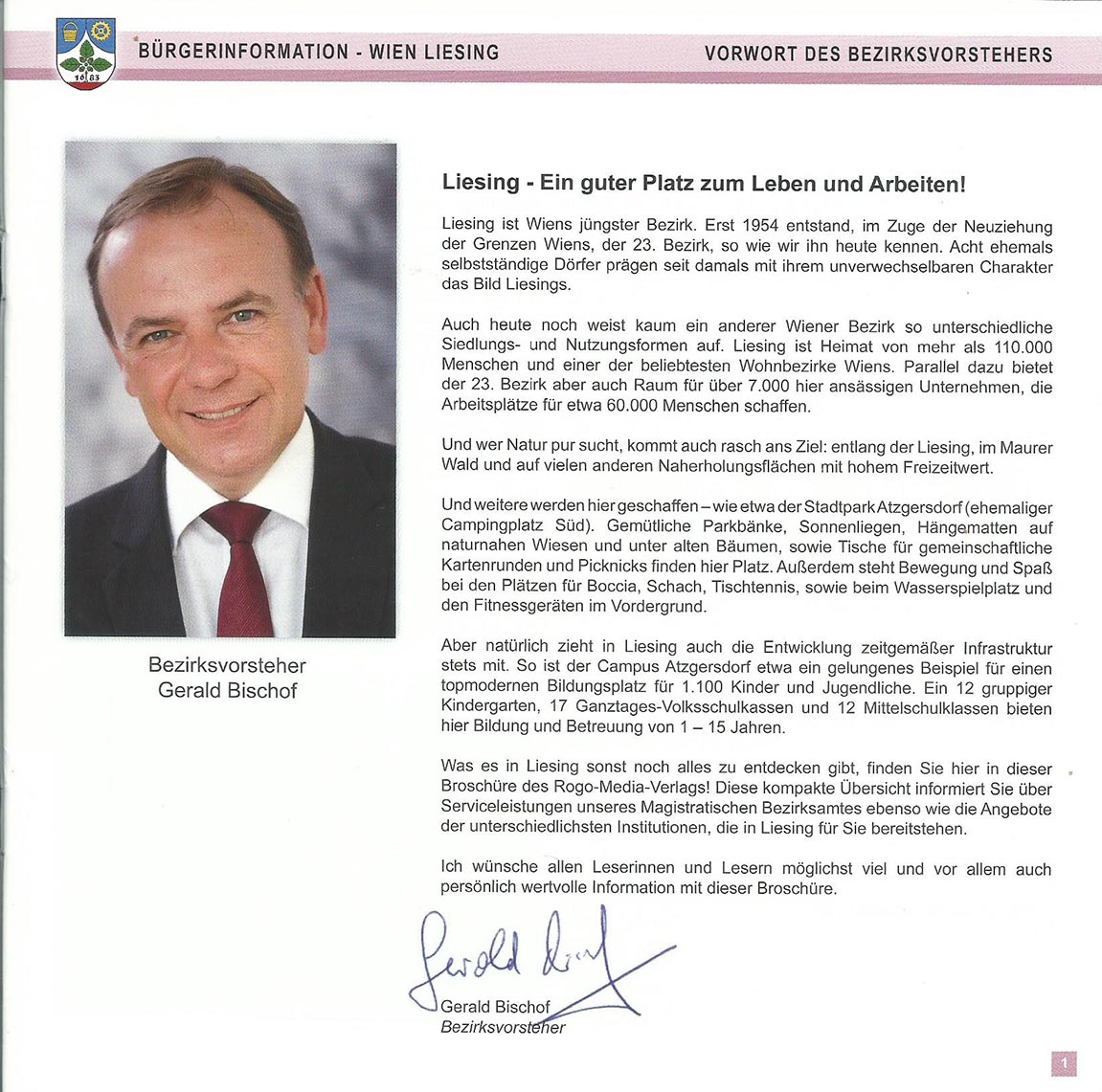 Bezirksvorsteher Herr Gerald Bischof