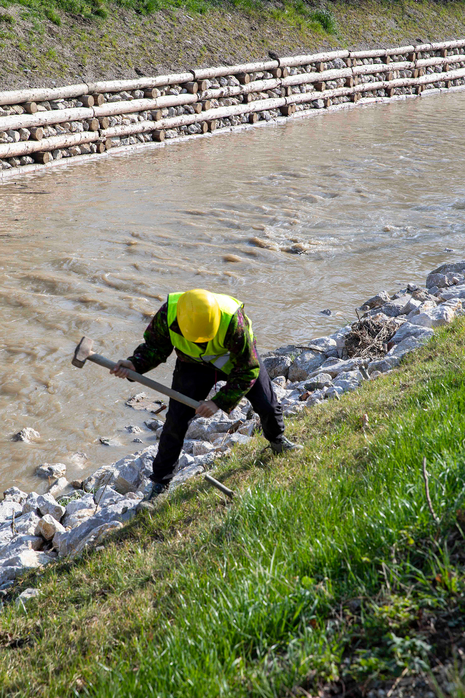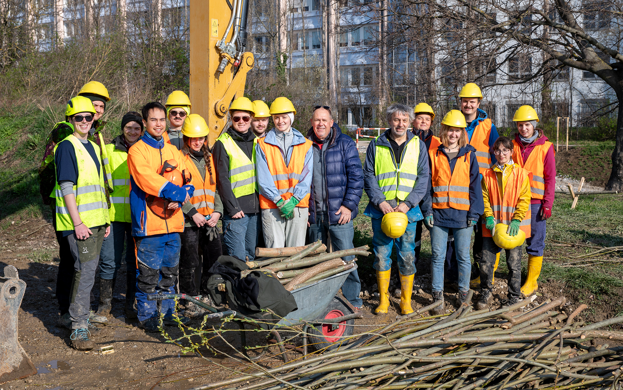 Vom Hörsaal an den Liesingbach wechselten derzeit etwa 15 Studentinnen und Studenten der Universität für Bodenkultur. Unter der Leitung von Univ. Prof. Dr. DI Hans Peter Rauch absolvieren sie ein Baupraktikum und unterstützen die Arbeiter der MA 45-Wiener Gewässer bei der Begrünung des bereits „rückgebauten“ Liesingbaches.